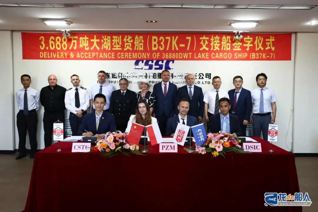 7月22日,由中船集团大连造船山船重工为波兰船东PZM公司建造的3.7万吨大湖型散货船(B37K-7)成功举行交船仪式。该船被命名为“Polsteam Insko”轮。