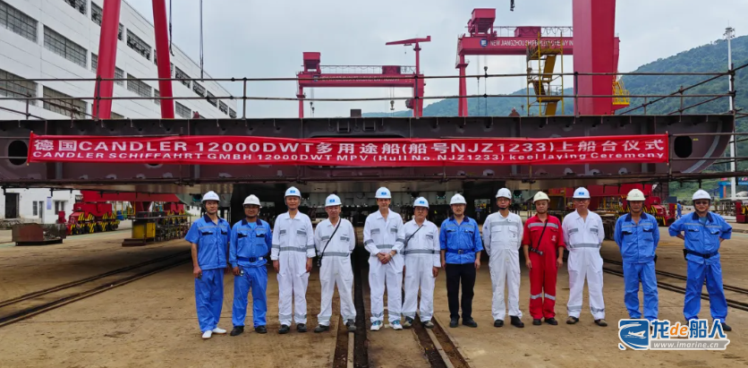 7月28日,新江洲船舶重工有限责任公司为德国船东Candler Schiffahrt GmbH建造的首艘12000DWT多用途船(船号NJZ1233)在公司302室外船台举行上船台仪式。