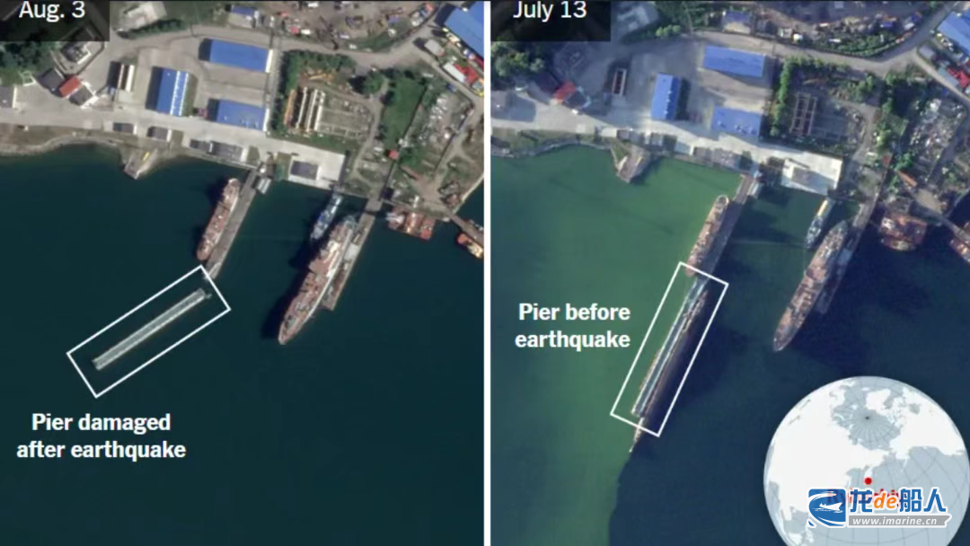报道说,美国行星实验室公司拍摄的照片显示,位于堪察加半岛的雷巴奇潜艇基地一座浮动码头受损。码头发生部分断裂。除了受损码头外,卫星图像未显示其他重大破坏。