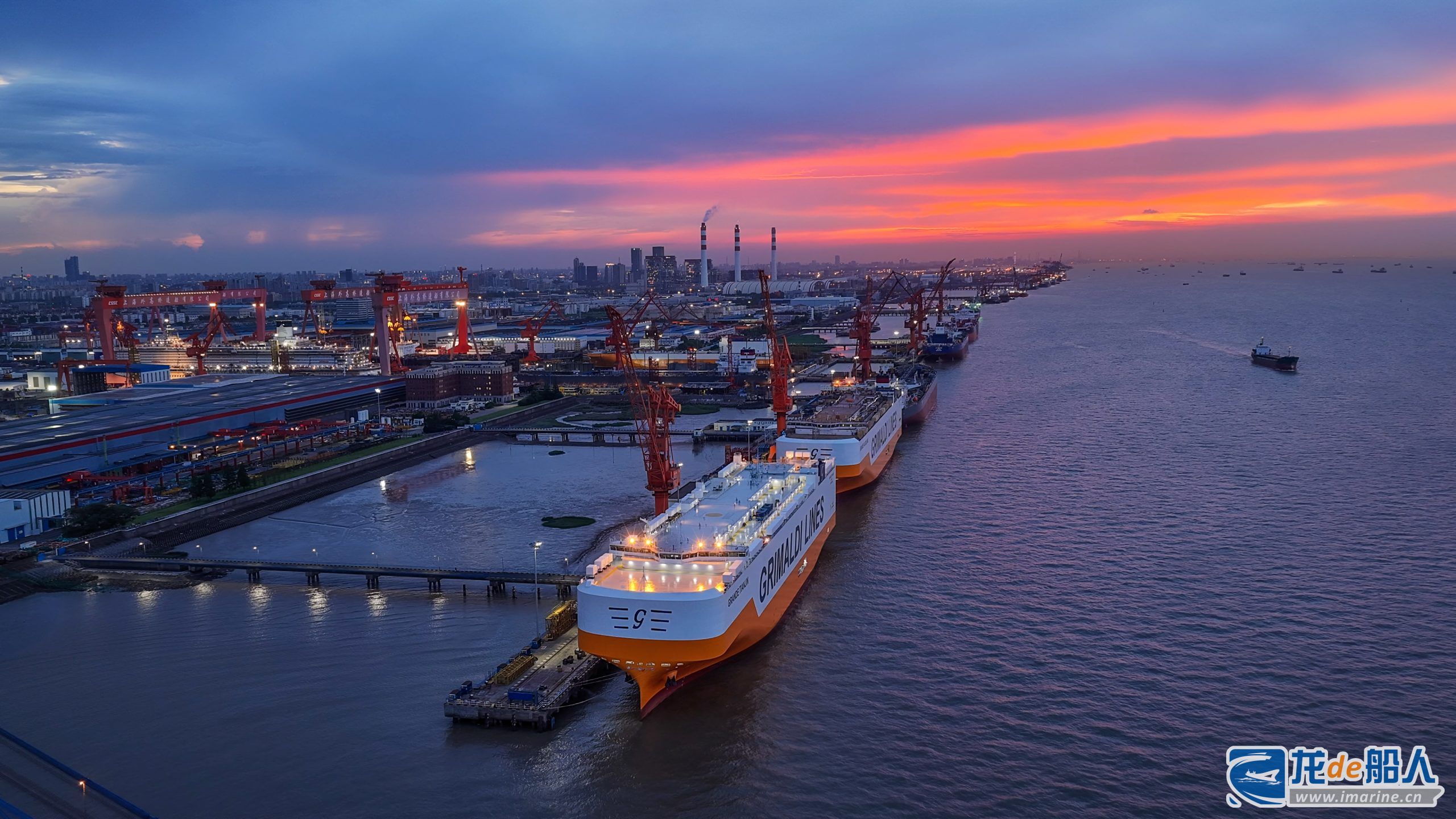 8月8日,由中国船舶集团有限公司旗下上海外高桥造船有限公司为意大利Grimaldi公司建造的首艘9000车位汽车运输船“GRANDE TIANJIN”号命名交付。