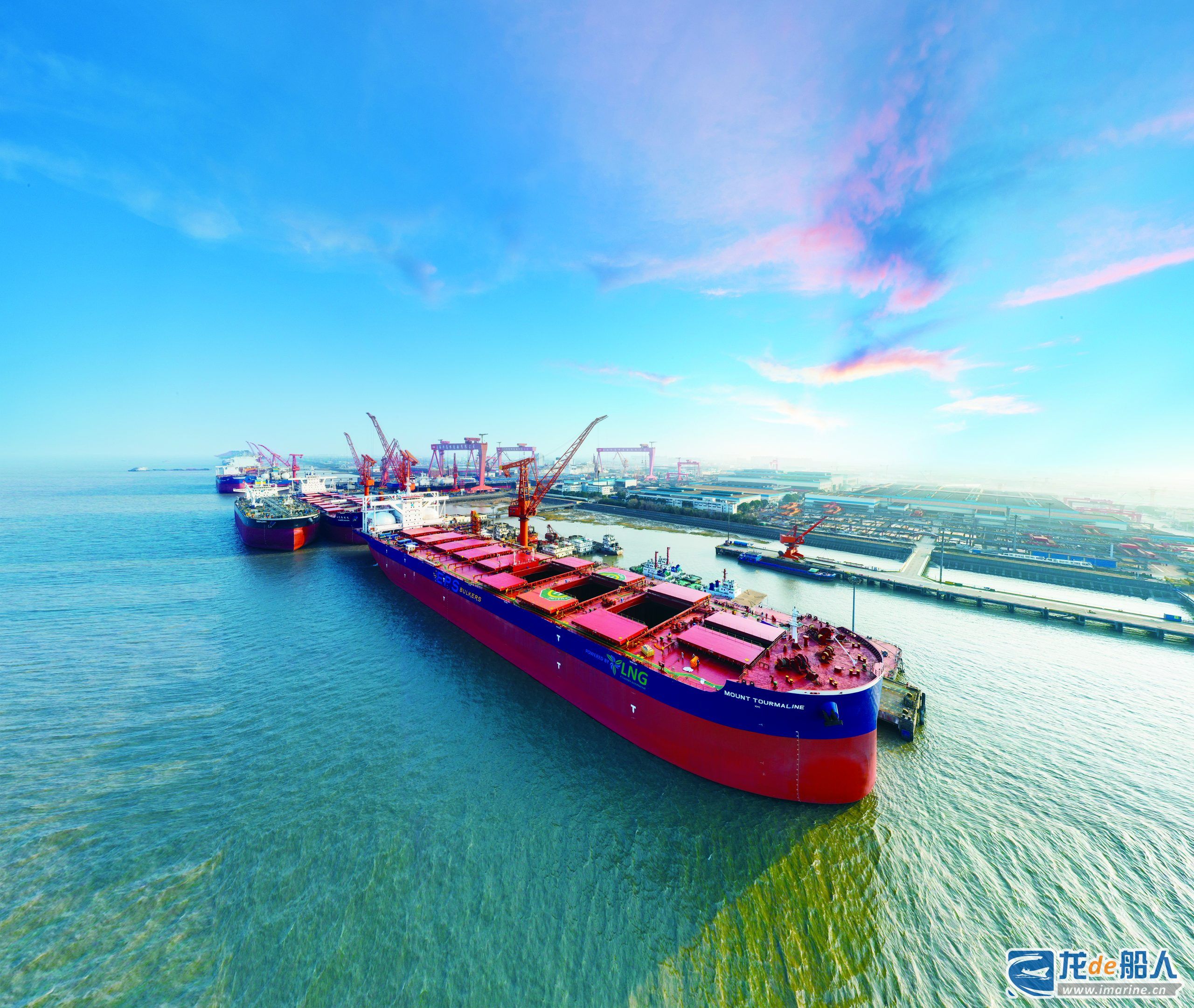 这一时期,外高桥造船批量交付7000TEU集装箱船,创下平均1个月交付2艘的佳绩,细分领域全球第一。成功交付全球首艘20.9万吨纽卡斯尔型LNG双燃料动力散货船“碧玺山”轮,引领全球货船领域逐步迈入双燃料时代。交付全球首艘风帆助推阿芙拉型成品油轮,为全球航运业绿色低碳转型提供多样选择,彰显了外高桥造船为业界提供绿色可持续发展解决方案的决心和能力。