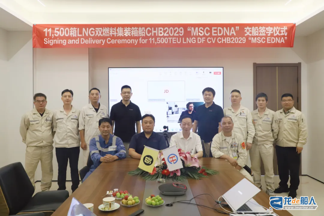 值得注意的是,8月11日下午,舟山长宏国际和MSC通过视频方式顺利完成“MSC EDNA”(CHB2029)船的交船文件签署,成功交付船东。