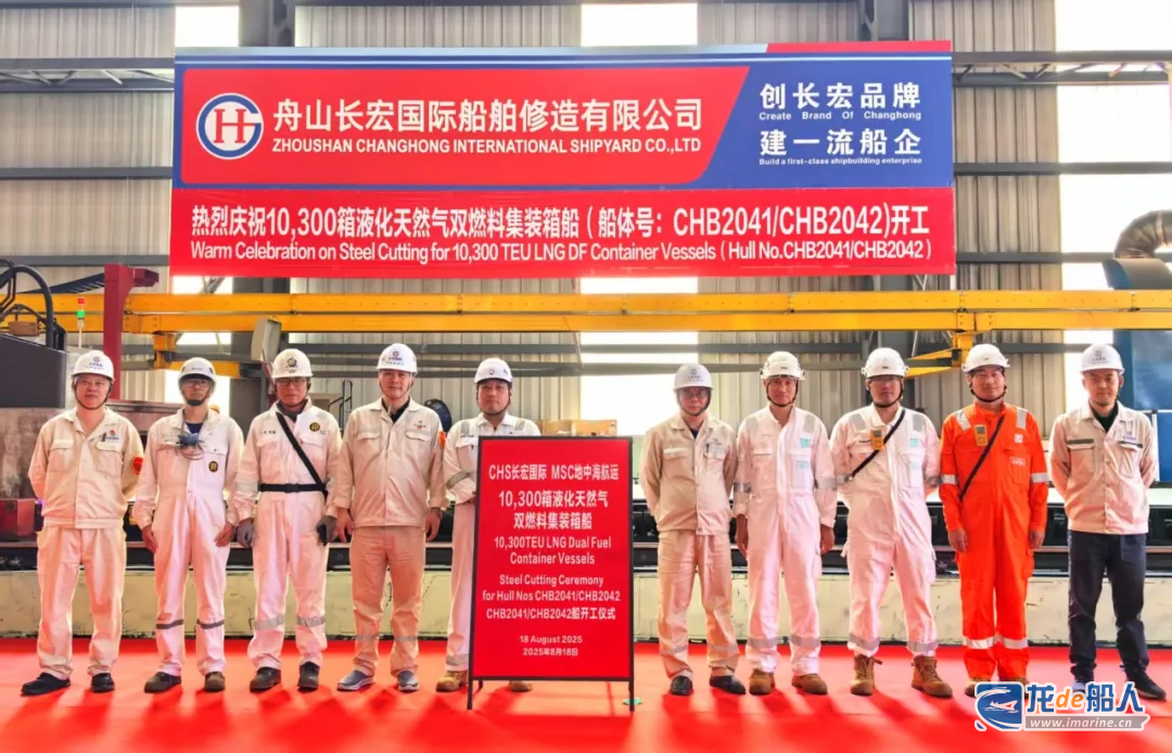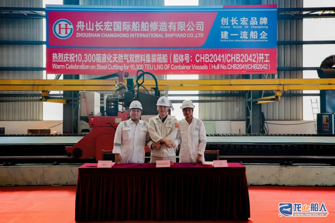 8月18日,舟山长宏国际为地中海航运(MSC)建造的第5、6艘10300箱LNG双燃料集装箱船(CHB2041/CHB2042)在智能车间顺利点火开工。