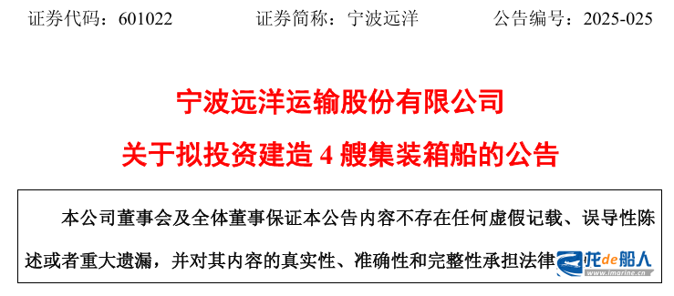 6月19日,宁波远洋发布公告称,宁波远洋或其子公司拟使用不超过20亿元人民币投资建造4艘4300TEU集装箱船。以此推算,每艘船造价不超过5亿元。此次投资建造船舶的资金来源包括但不限于公司自有资金、自筹资金等。