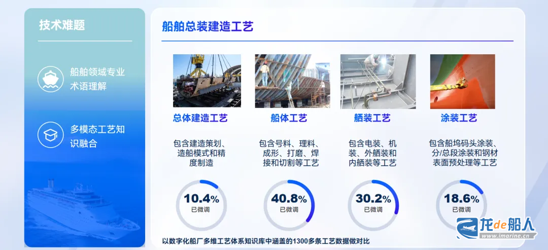 船舶工艺大模型是十一所基于1340对专业数据集,融合通义千问与DeepSeek技术底座,通过SFT监督微调和4bit量化技术打造的专业领域大模型。该模型攻克了船舶领域专业术语理解、多模态工艺知识融合等关键技术难题,具备工艺知识智能问答、方案优化建议、缺陷诊断等核心功能,全面覆盖船舶设计、焊接、涂装、装配等制造全流程。其创新价值在于实现了船舶制造Know-How与AI技术的深度耦合,可提升工艺设计效率30%以上,降低返工率近15%。目前已在工艺智能助手、科技管理系统AI模块等场景落地应用,未来还将拓展至智能船厂规划、虚拟工艺工程师等创新领域,推动船舶工业从经验驱动向知识驱动转型。