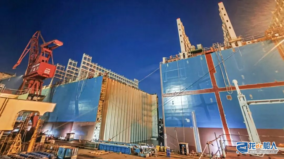 沪东中华西部厂区1号船坞一船水上对接、一船入坞