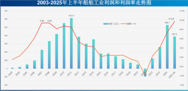 上半年,全国规模以上船舶工业企业实现营业收入3987.6亿元,同比增长20.8%;实现利润总额387.4亿元,同比增长72.6%。营业收入利润率9.71% 。