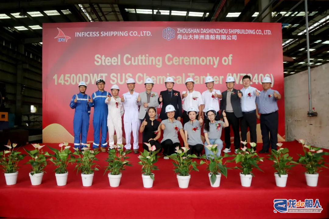 9月24日,舟山大神洲造船有限公司与韩国Inficess Shipping就14500 DWT 不锈钢化学品船(WZ2406)在大神洲盘峙厂区举行开工仪式。