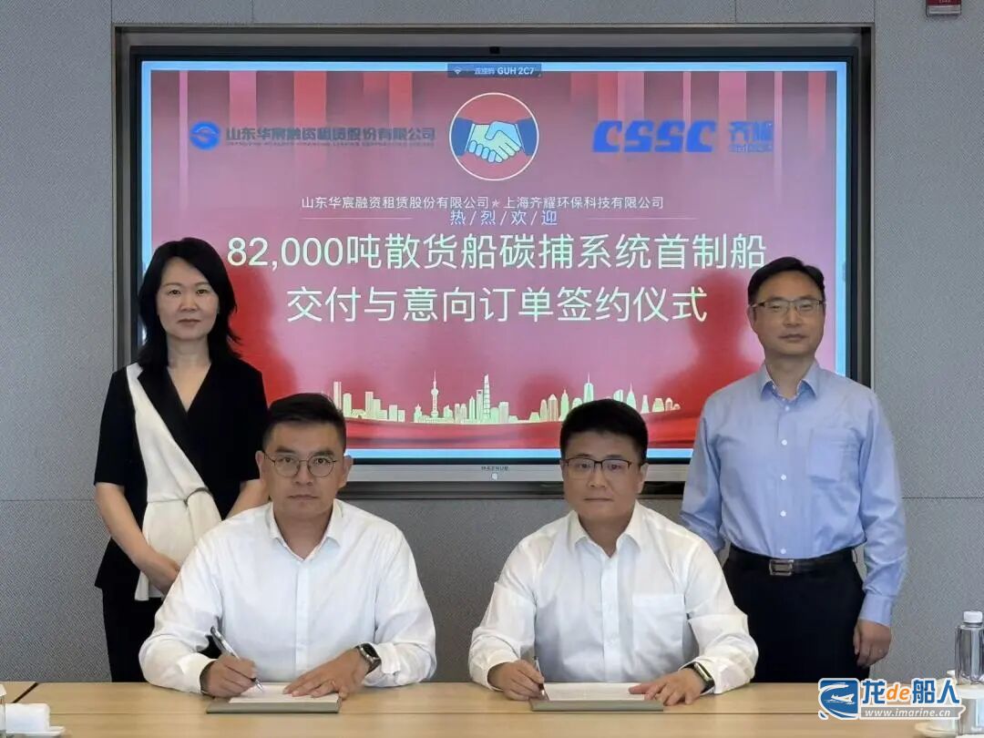 本项目是中船集团下属齐耀环保和山东海洋集团下属华宸租赁联合打造的国产化装备研发与实船应用的示范项目,是深入贯彻落实“双碳”战略的具体实践。从2023年3月签署战略协议,到同年12月签约全球首个全流程船舶碳捕集合同,再到此次新造船试航交付,并签署意向订单,双方合作高效推进,展现了我国在绿色航运技术领域的加速跑。