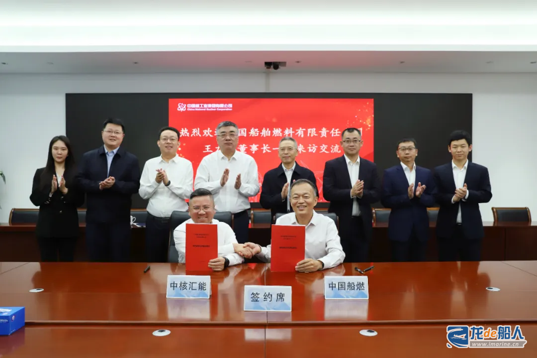10月14日,中核汇能有限公司与中国船舶燃料有限责任公司(下称中国船燃)围绕国家“双碳”目标下的能源技术发展路径及航运业绿色转型进行座谈交流,中国船燃副总经理姜石与公司副总经理欧阳朝晖共同签署绿色燃料合作框架协议。
