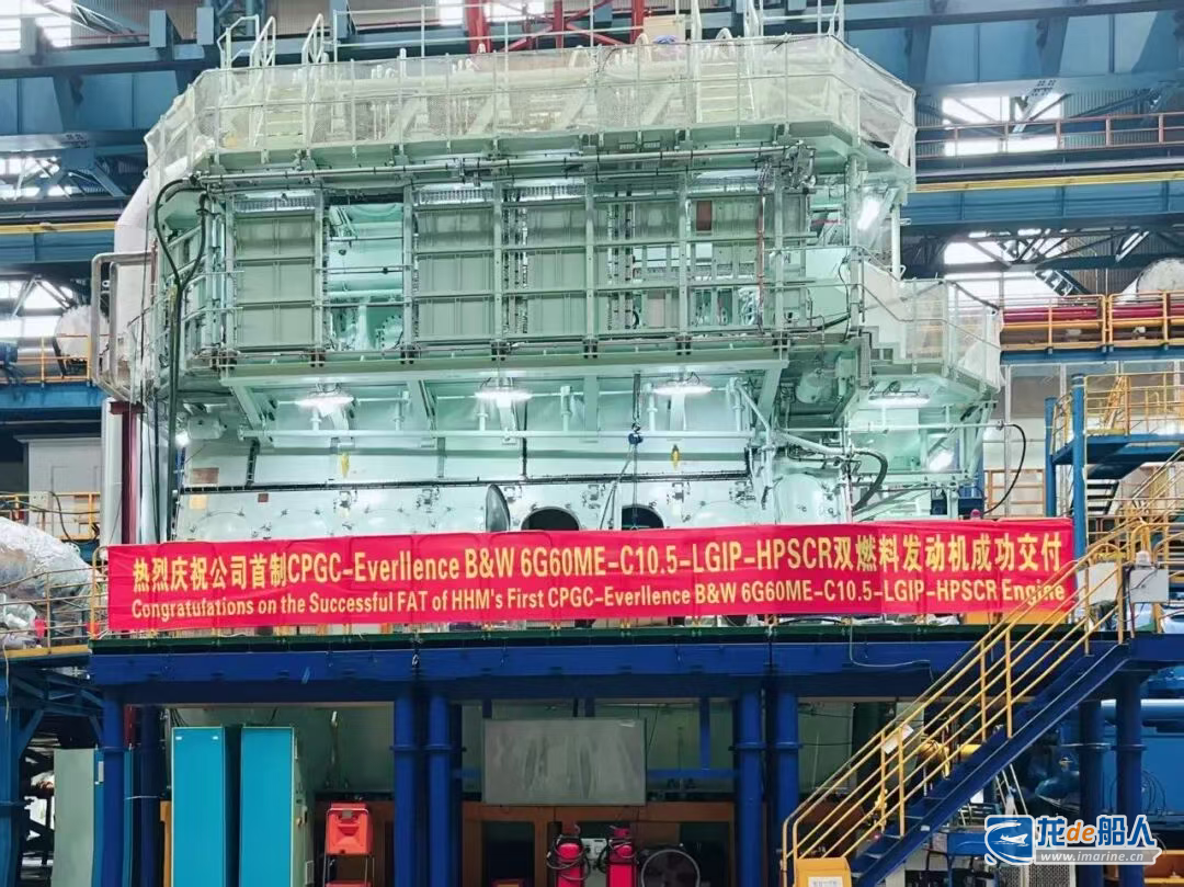 近日,中船动力下属沪东重机有限公司首台 6G60ME-C10.5-LGIP-HPSCR 液化石油气(LPG)双燃料发动机在沪东重机镇江厂区正式交付,标志着沪东重机在绿色低碳动力领域的又一重要成果。