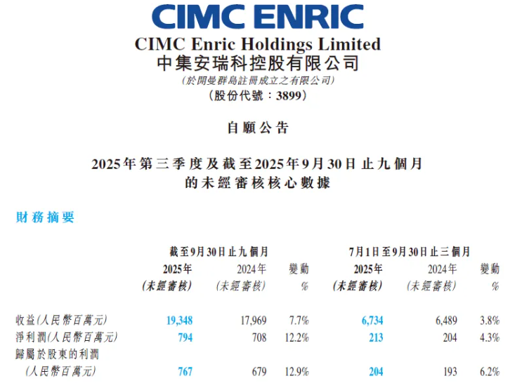 10月28日,中集安瑞科控股有限公司及其附属公司(统称“中集安瑞科”或“集团”)公布2025年三季度营运数据。2025年前三季度,集团收入同比增长7.7%至约人民币193.5亿元(人民币,下同);归母净利润稳定持续增长达7.7亿元,同比提升12.9%。