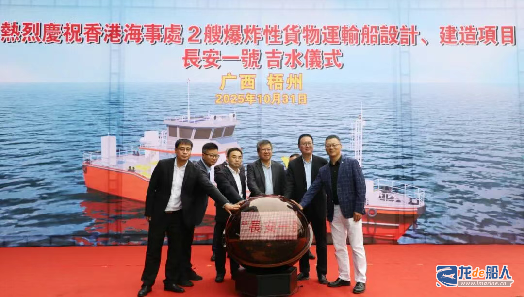 10月31日,中国船舶集团下属中船广西公司与广州船舶工业有限公司、广州船舶及海洋工程设计研究院联合中标的香港海事处2艘爆炸性货物运输船设计、建造项目1号船“長安一號”吉水仪式在所属桂船公司顺利举行。