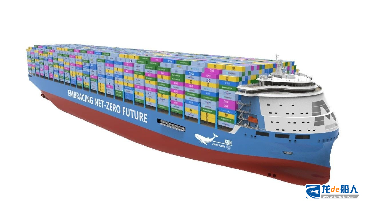 2023年,中国船舶集团旗下江南造船展示了采用第四代堆型熔盐反应技术的24000TEU超大型集装箱船设计方案。该船型安全性高、反应堆高温低压运行,在原理上规避堆芯融化,具备防扩散与固有安全特征。