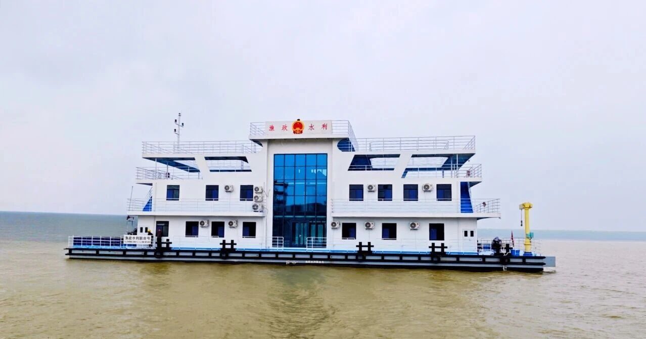 望城区渔政水利联合执法趸船总长40米,型宽13.8米,型深2米,适用于内河B级航区。该船作为长沙市望城区水域执法体系的核心设施,将显著提升区域渔政水利执法效能与应急响应能力。