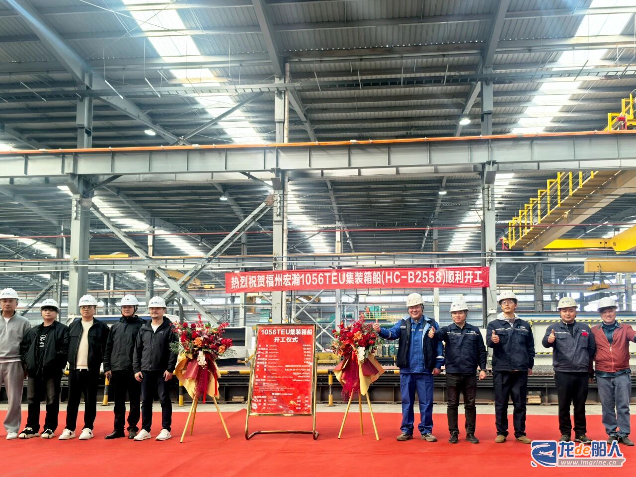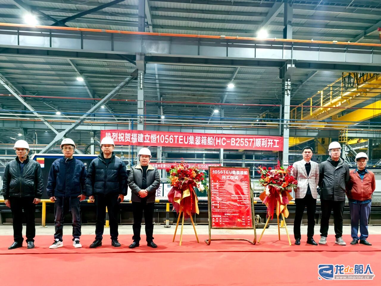 11月21日,湖北合创重工有限公司热烈祝贺福建立恒航运有限公司 1056TEU 集装箱船于06:27率先开工,福州宏瀚航运有限责任公司1056TEU集装箱船紧随其后,于09:38顺利开工。