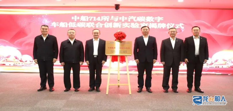 日前,由中船集团七一四所与中汽碳(北京)数字技术中心有限公司(以下简称中汽碳数字)共同发起的车船低碳联合创新实验室正式揭牌成立。中船集团党组副书记、总经理王国强和党组成员、副总经理赵同宾,中国汽车技术研究中心有限公司党委书记、董事长安铁成和党委委员、副总经理周华现场见证揭牌。中船集团七一四所所长张信学与中汽碳数字总经理赵冬昶为实验室揭牌。