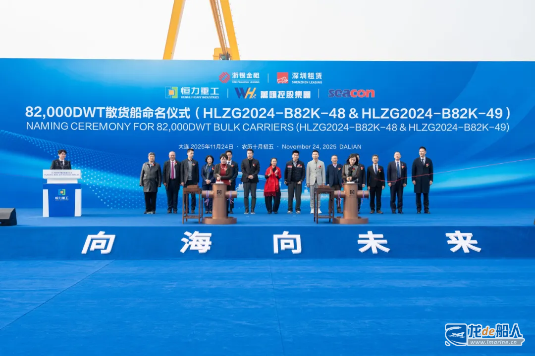 两艘船舶的顺利交付与命名,不仅是我们拓展散货运输版图、提升市场竞争力的关键一步,更是深化多方合作、共绘航运事业蓝图的全新起点。希望以此次交船为契机,与恒力集团及各位合作伙伴携手并进,砥砺前行,共同书写中国船舶航运事业更加辉煌的篇章!”