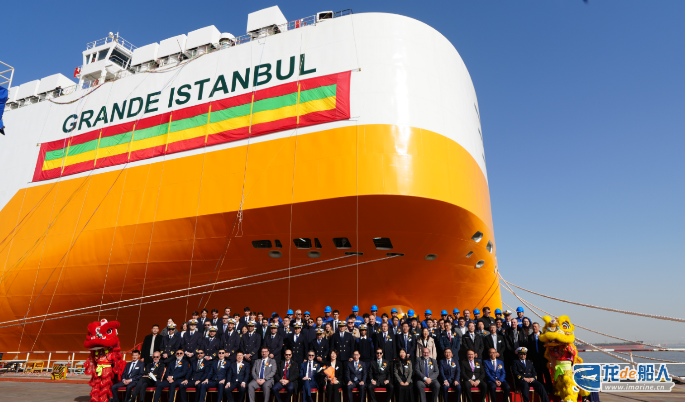 11月28日,外高桥造船为意大利GRIMALDI集团建造的9000车PCTC船“GRANDE ISTANBUL”轮正式签字并命名交付,该船是双方合作的第4艘9000车汽车运输船。