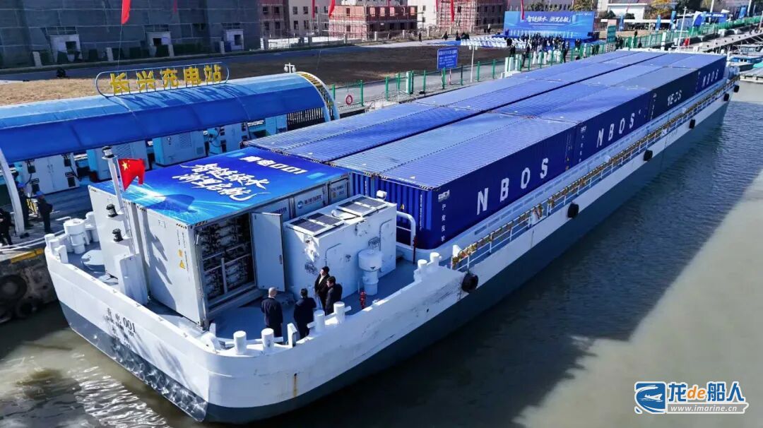 11月28日,湖州港口船业有限公司建造的64TEU纯电动智能内河集装箱船“青电001”顺利交付。