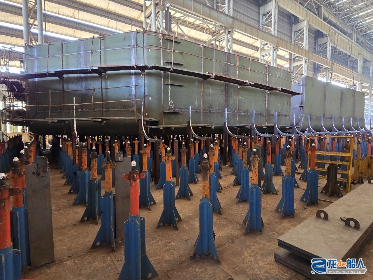 11月24日,外高桥海工首制B型舱(H1405船)首个分段(382分段)在浮体车间顺利完成结构吊装,揭开了B型舱分段结构制作的序幕。