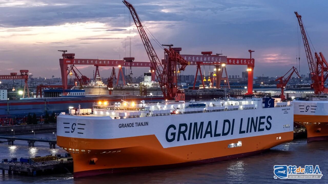 在此基础上,项目团队持续优化,在9000车PCTC系列船上,成功稳定了“双80天”的先进建造节拍——这一卓越效率在公司交付的“GRANDE TIANJIN”轮上得到了完美体现。这艘为意大利Grimaldi公司建造的9000车位汽车运输船,不仅记录着外高桥造船累计交付船舶产品达到600艘的里程碑节点,更是公司PCTC船建造能力成熟的有力见证。PCTC船建造效率的飞跃源于以“甲板顶升车周转”核心的精益管理实践。通过精准策划,将顶升车这一核心资源的周转率稳定控制在36天以内,有效拉动了全船生产节奏;同时,“车辆舱一体化建造”路径的深化应用,以及“三取消”“四清零”管理手段的严格执行,使得船舶出坞完整性和试航状态逐船显著提升,建造工时持续优化,展现出公司在高附加值船型上卓越的批量交付能力。