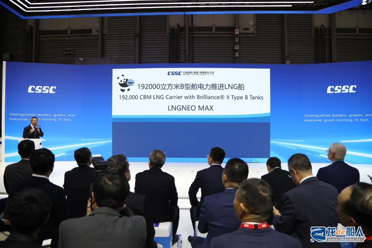 12月2日,在2025年中国国际海事技术学术会议和展览会上,江南造船正式发布全球首型19.2万立方米B型舱电力推进LNG运输船船型设计。