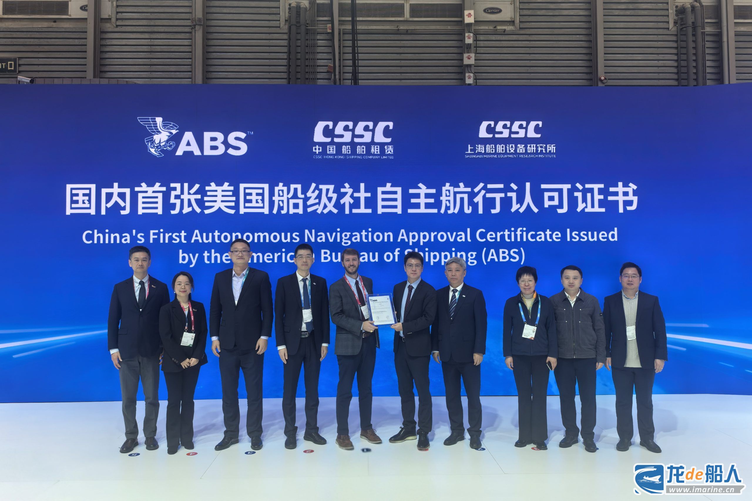 12月4日,在中国国际海事技术学术会议和展览会(MARINTEC CHINA2025)上,搭载中国船舶集团第七〇四研究所自主研发的自主航行系统82000吨散货船“CS JINAN”轮,获得美国船级社(ABS)颁发的中国首张自主航行认可证书,也是全球首艘远洋散货船获得的ABS船级社自主航行认可证书,被业界誉为全球散货船自主航行发展的重要里程碑,将为行业树立新的技术标杆,引领自主航行技术迭代升级。