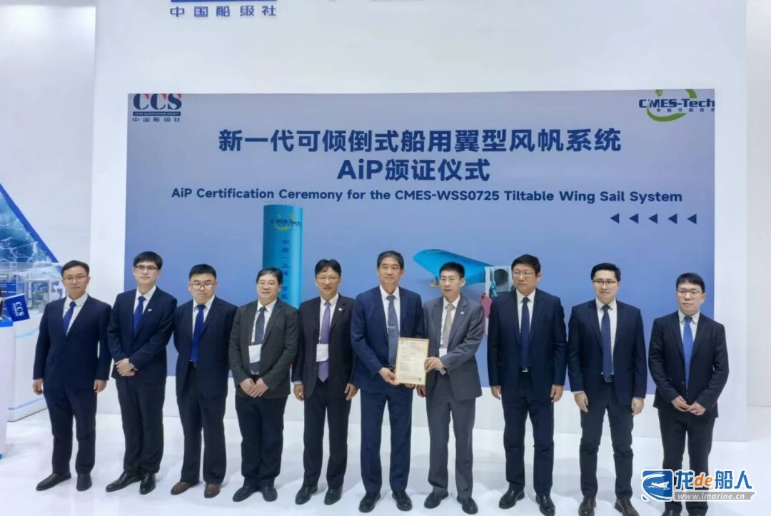 12月3日,新一代可倾倒式船用翼型风帆系统在中国国际海事会展上通过权威认证,成功获得中国船级社(CCS)颁发的原理认可证书。