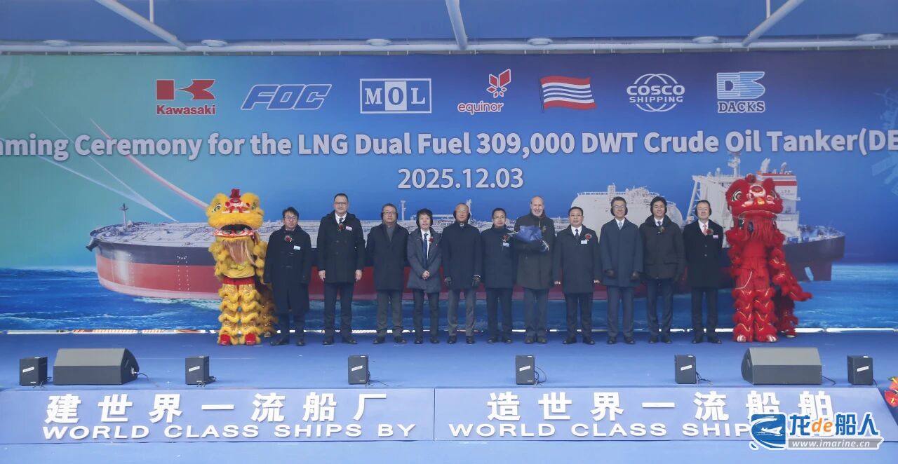 据介绍,此次命名的LNG双燃料VLCC就具备航行阻力小、燃料蒸汽浪费少、碳排放低的特点,在能源利用最大化的同时减少环境污染。