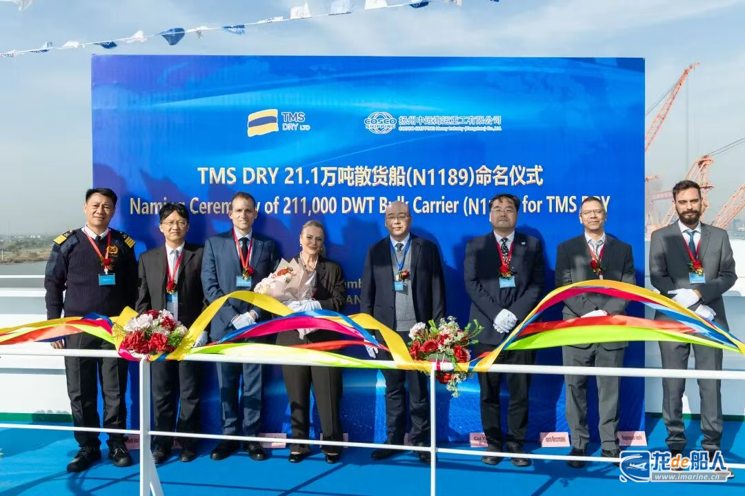 12月9日,扬州中远海运重工有限公司为希腊船东TMS DRY建造的第三艘21.1万吨纽卡斯尔型散货船N1189轮命名为“DELOS”(德洛斯)轮。该船的建造完工标志着双方合作关系的持续深化,也再次展现了扬州中远海运重工在大型散货船建造领域的坚实能力与卓越信誉。