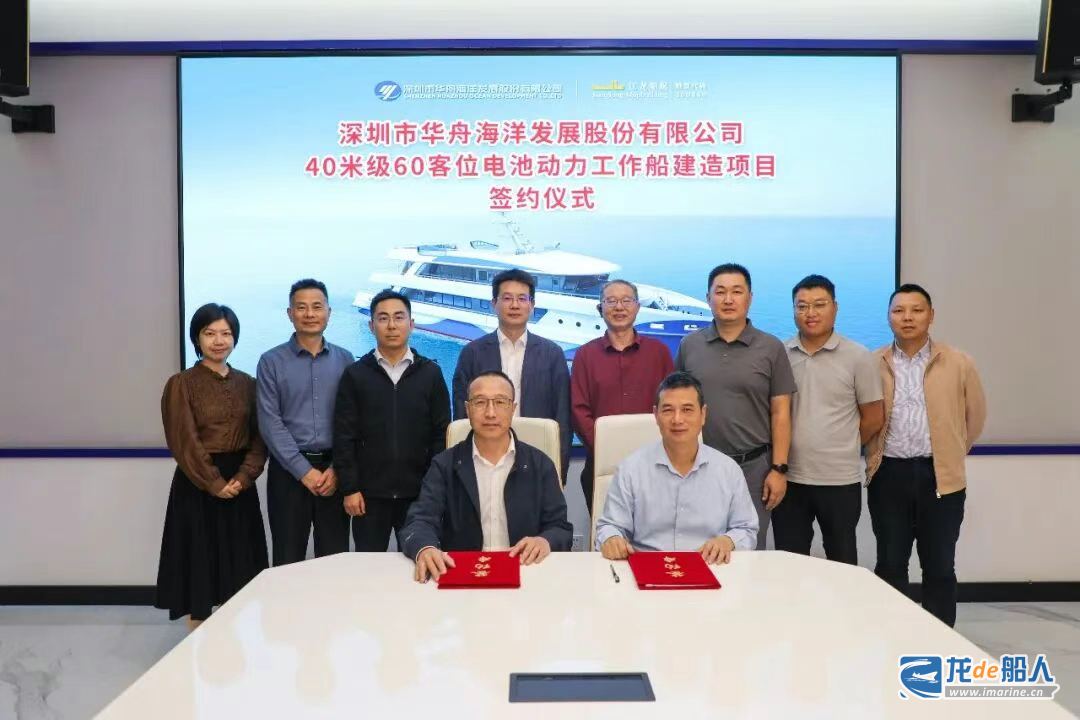 12月12日,江龙船艇成功签约深圳市华舟海洋发展股份有限公司40米级60客位电池动力工作船。这一合作不仅彰显了江龙船艇在新能源船舶领域的技术硬实力,更标志着国内沿海交通船绿色智能化升级迈出关键一步。深圳港集团有限公司董事会秘书刘剑、深圳市华舟海洋发展股份有限公司董事长韩劲柏、江龙船艇董事长晏志清、董事兼副总经理贺文军等出席签约仪式。
