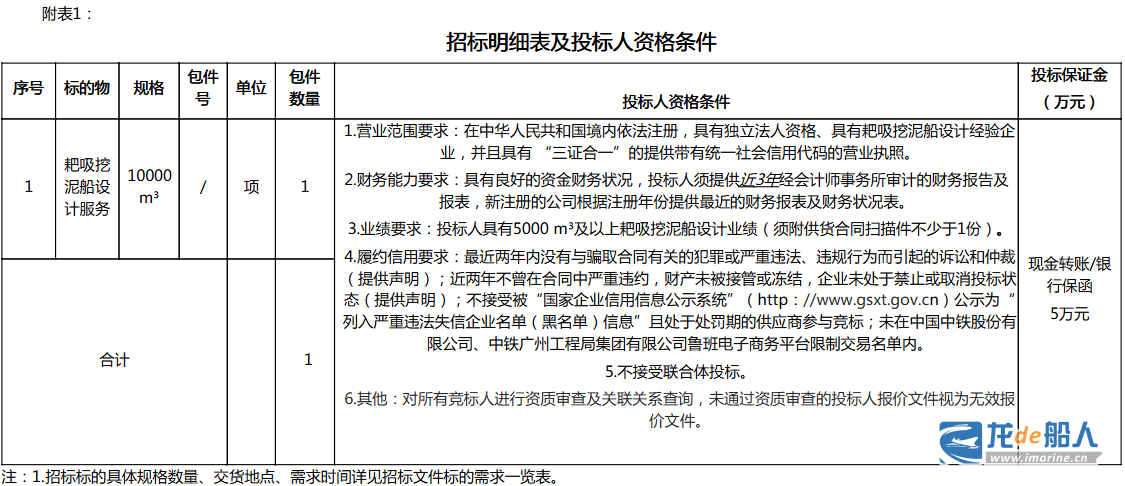 2.3采购标的物:10000m³耙吸挖泥船设计服务。(具体见附表1.)