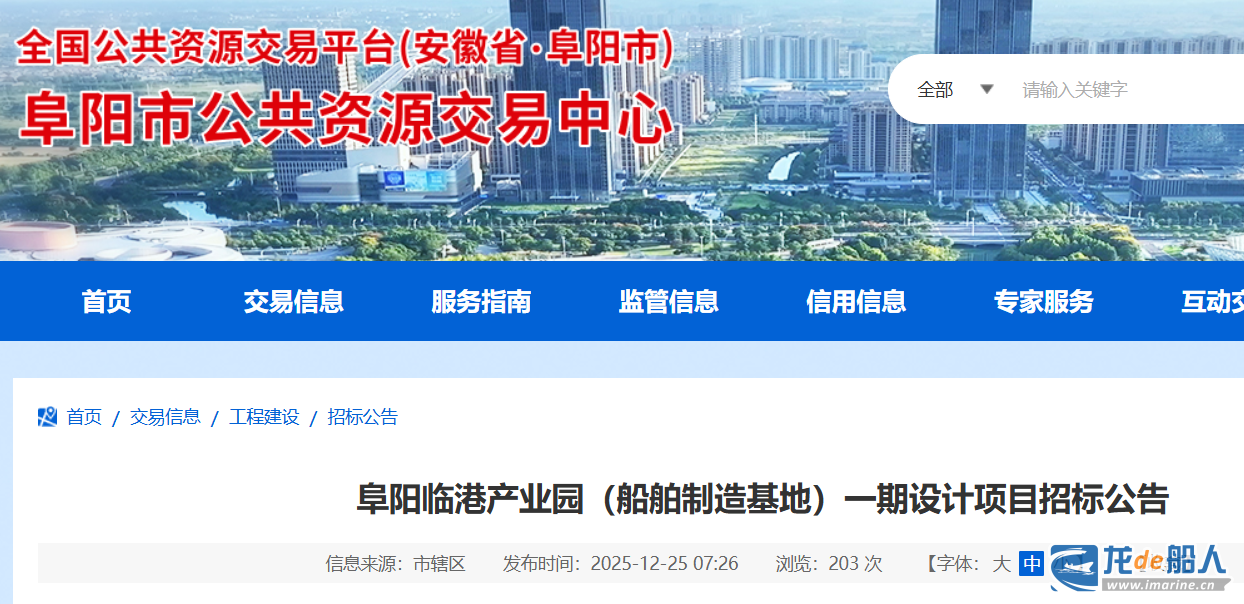 阜阳临港产业园(船舶制造基地)一期设计项目招标公告