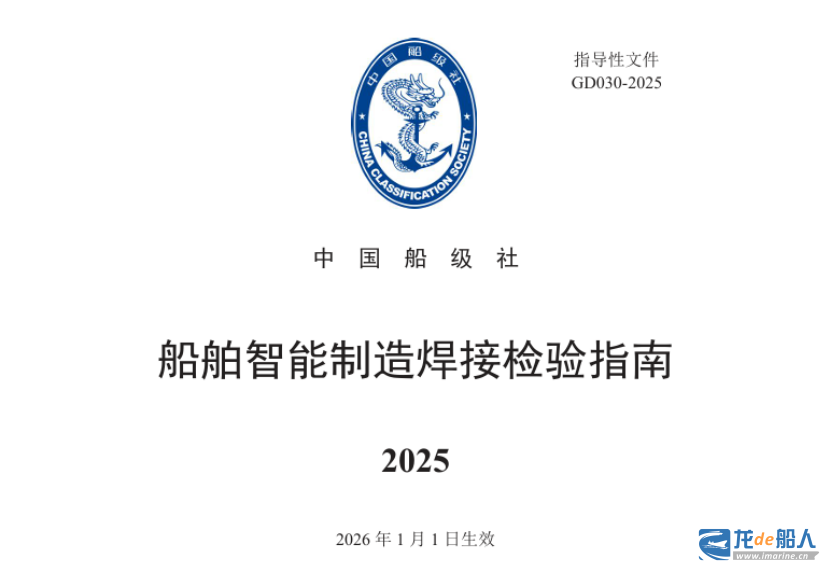 《船舶智能制造焊接检验指南》2025生效时间为2026年1月1日。