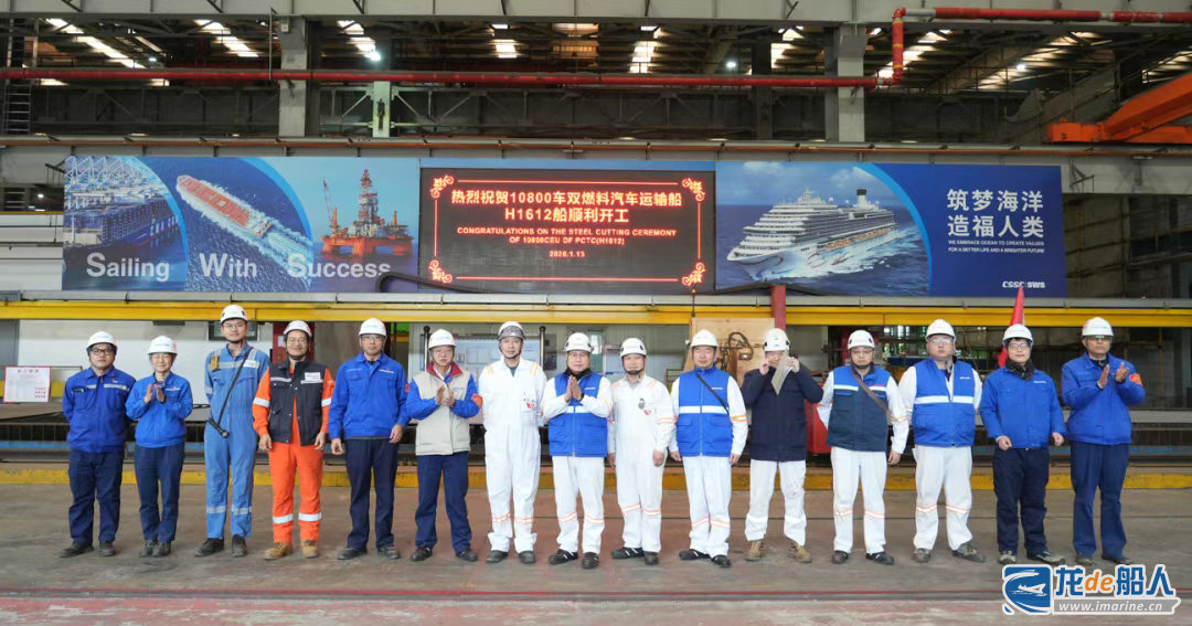 1月13日,上海外高桥造船有限公司为加拿大Seaspan公司建造的10800CEU双燃料汽车运输船H1612船,以及为法国达飞公司建造的9200TEU双燃料集装箱船H1404船顺利开工,同日为泰国RCL船东建造的11000TEU集装箱船H1639船在分公司开工。