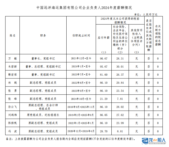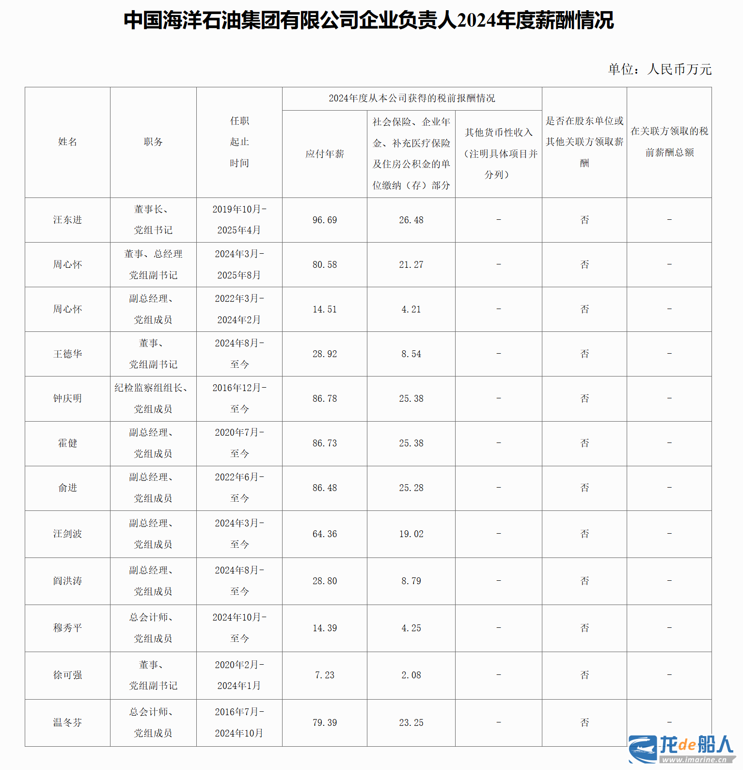 中远海运、中海油、招商局,央企负责人薪酬披露