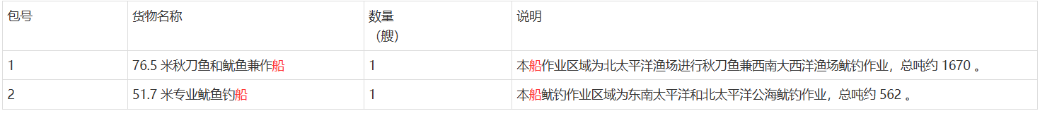 采购人:中水集团舟山远洋渔业有限公司