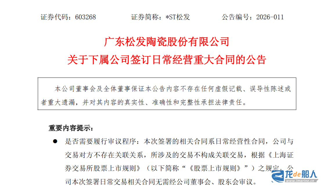 1月29日晚间,恒力重工上市主体*ST松发发布《关于下属公司签订日常经营重大合同的公告》,宣布其下属公司恒力造船(大连)有限公司2艘30.6万吨超大型原油运输船(VLCC)建造合同于近日签约生效。