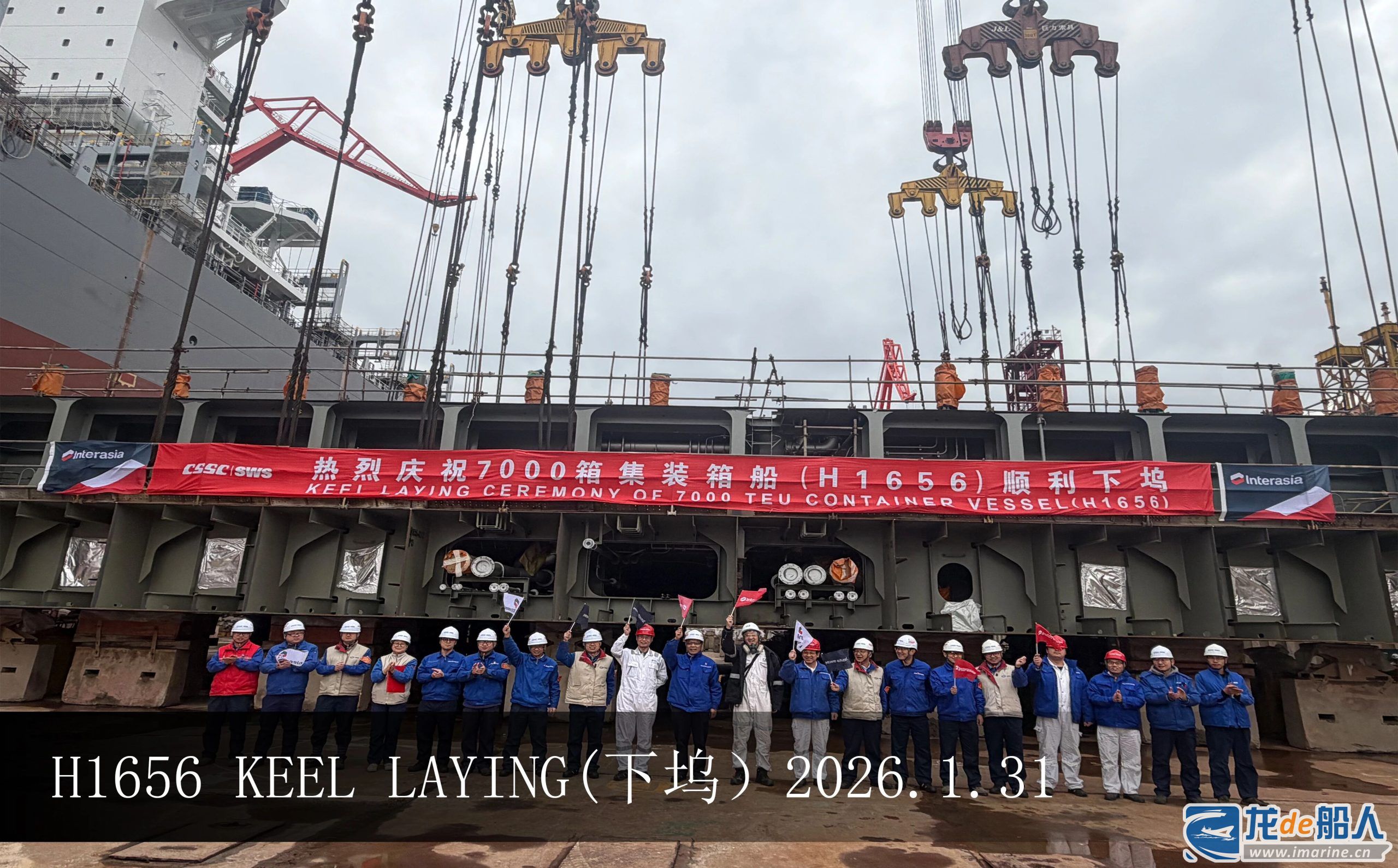 1月31日,外高桥造船为Frontline公司建造的15.8万吨苏伊士型原油轮H1589船及为运达航运建造的7000TEU集装箱船H1656顺利下坞。
