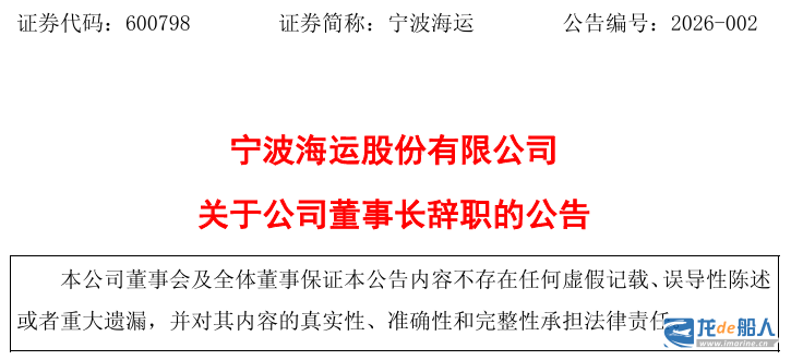 2月2日,宁波海运股份有限公司(以下简称“宁波海运”或“公司”)发布《关于公司董事长辞职的公告》。