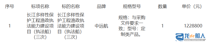 二、项目名称:长江多样性保护工程渔政执法能力建设项目(执法船)(三次)