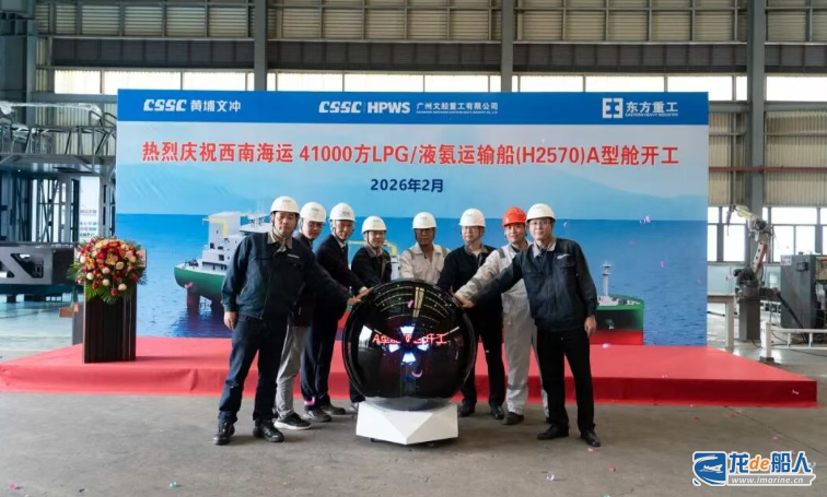 2月4日,广州文船重工有限公司与珠海东方重工首次携手共建的41000方LPG/液氨运输船A型舱项目,在珠海基地隆重举行开工仪式。