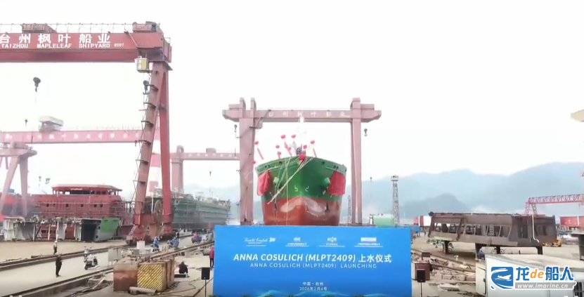2月4日,台州枫叶船业有限公司为意大利船东Fratelli Cosulich建造的Cosulich 系列新造船项目中“Anna Cosulich”号顺利上水、“Natalia Cosulich”号正式开工,“Carlotta Cosulich”号成功上船台。