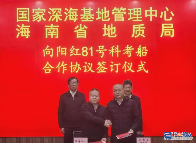 近日,海南省地质局与国家深海基地管理中心在青岛签订“向阳红81号”科考船合作协议。双方将以共管共用为原则,全面提升船舶及装备使用效率,积极推进调查数据、地质样品与科研成果共享。