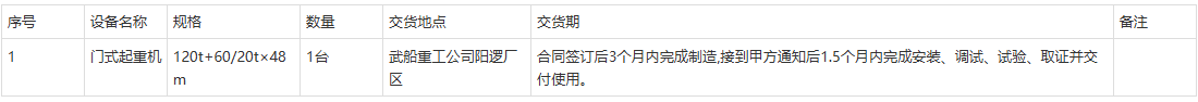 武昌船舶重工集团有限公司门式起重机采购招标公告