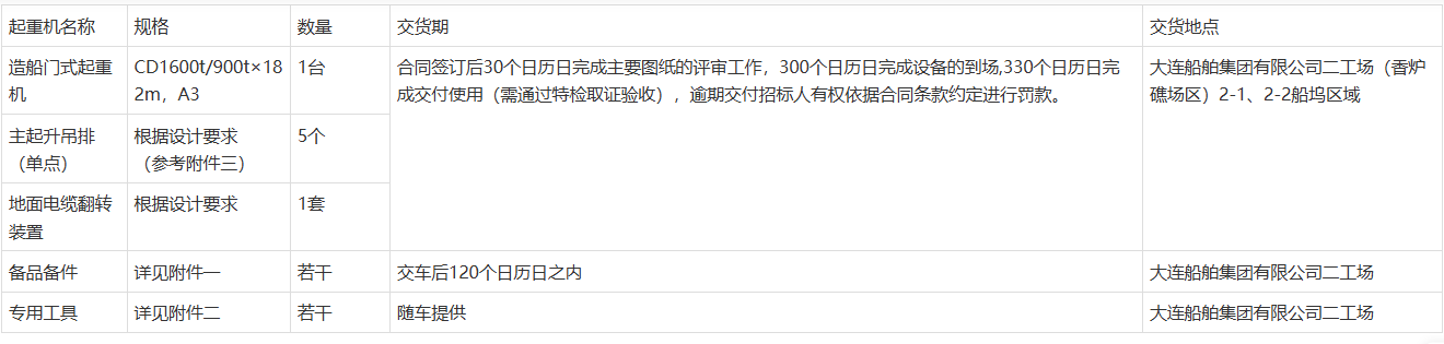 大连船舶重工集团有限公司1600t造船门式起重机采购招标公告