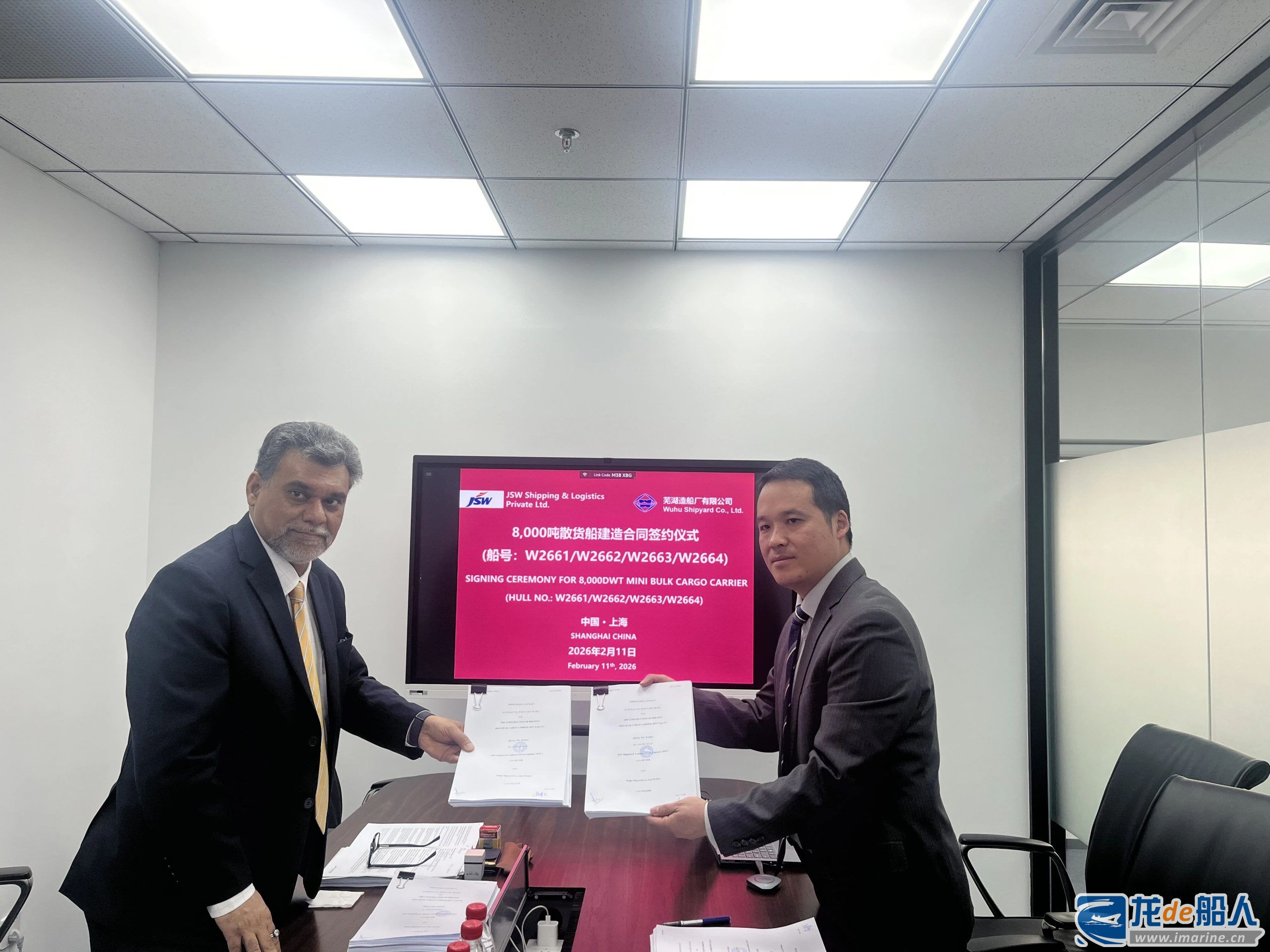 2月11日,芜湖造船厂有限公司与上海瑞宁航运有限公司签署2艘82000吨散货船建造合同,与印度JSW集团签署4艘8000吨杂货船建造合同。