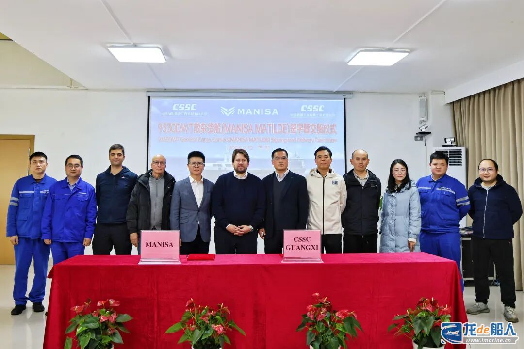 2月12日晚,中国船舶集团广西造船有限公司、中国船舶工业贸易上海有限公司与意大利MANISA CHARTERING SRL公司举行9330DWT散杂货船交船仪式,三方代表分别在上海、钦州签署交船文件,标志2026年首艘新造船舶正式交付,为后续系列船舶的高效建造确定了信心基石。