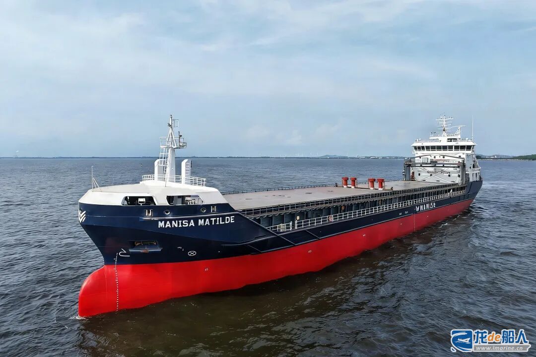 该船长119.9米,型宽17米,型深9.3米,设计吃水6.5米,最大吃水7米,设计航速13.2节,最大载重吨达9330吨,入级意大利船级社(RINA),具备低碳节能环保、载货量大、靠泊停车岸电接入便捷等特点。